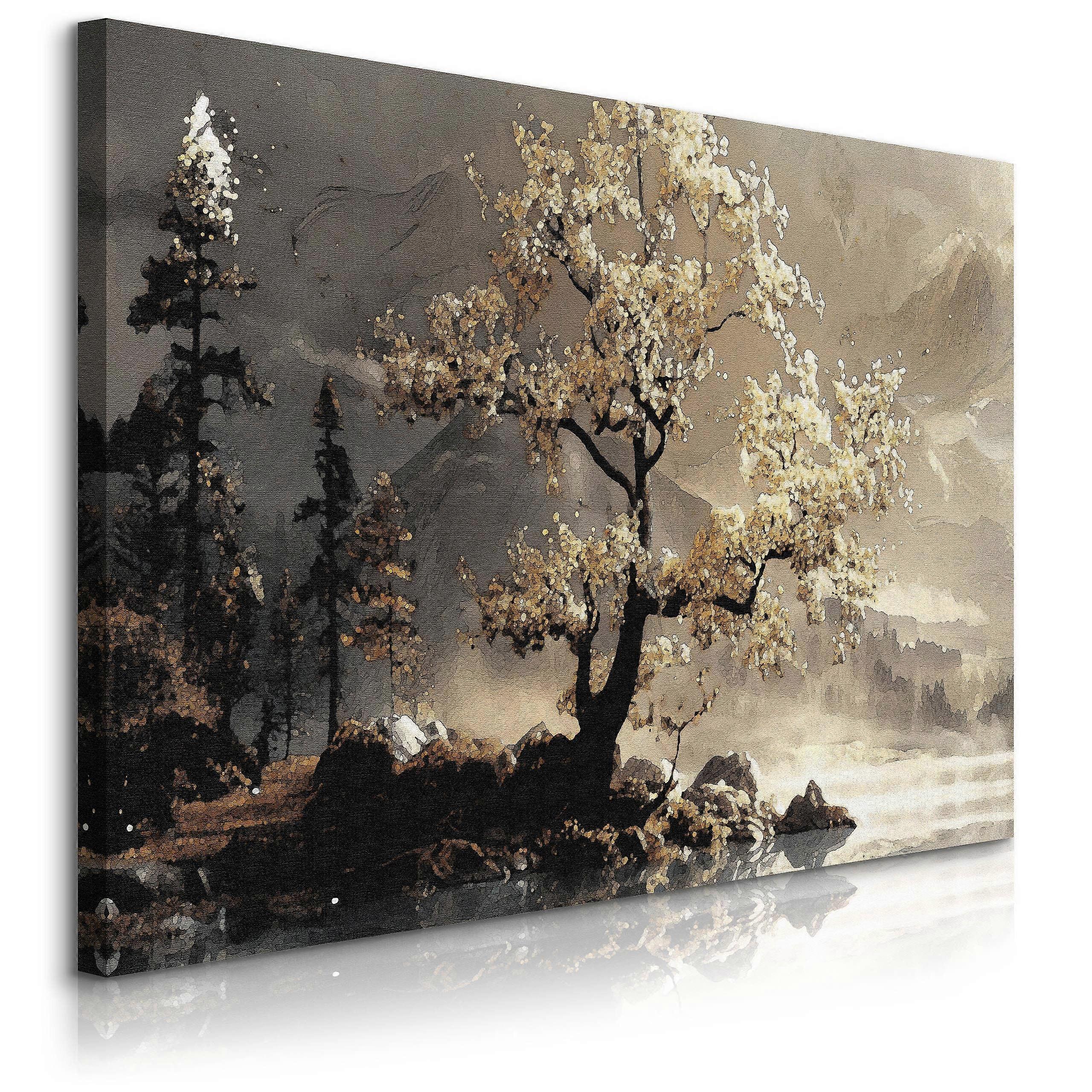 Obraz Na Płótnie Do Salonu Abstrakcyjne Drzewo Krajobraz Góry