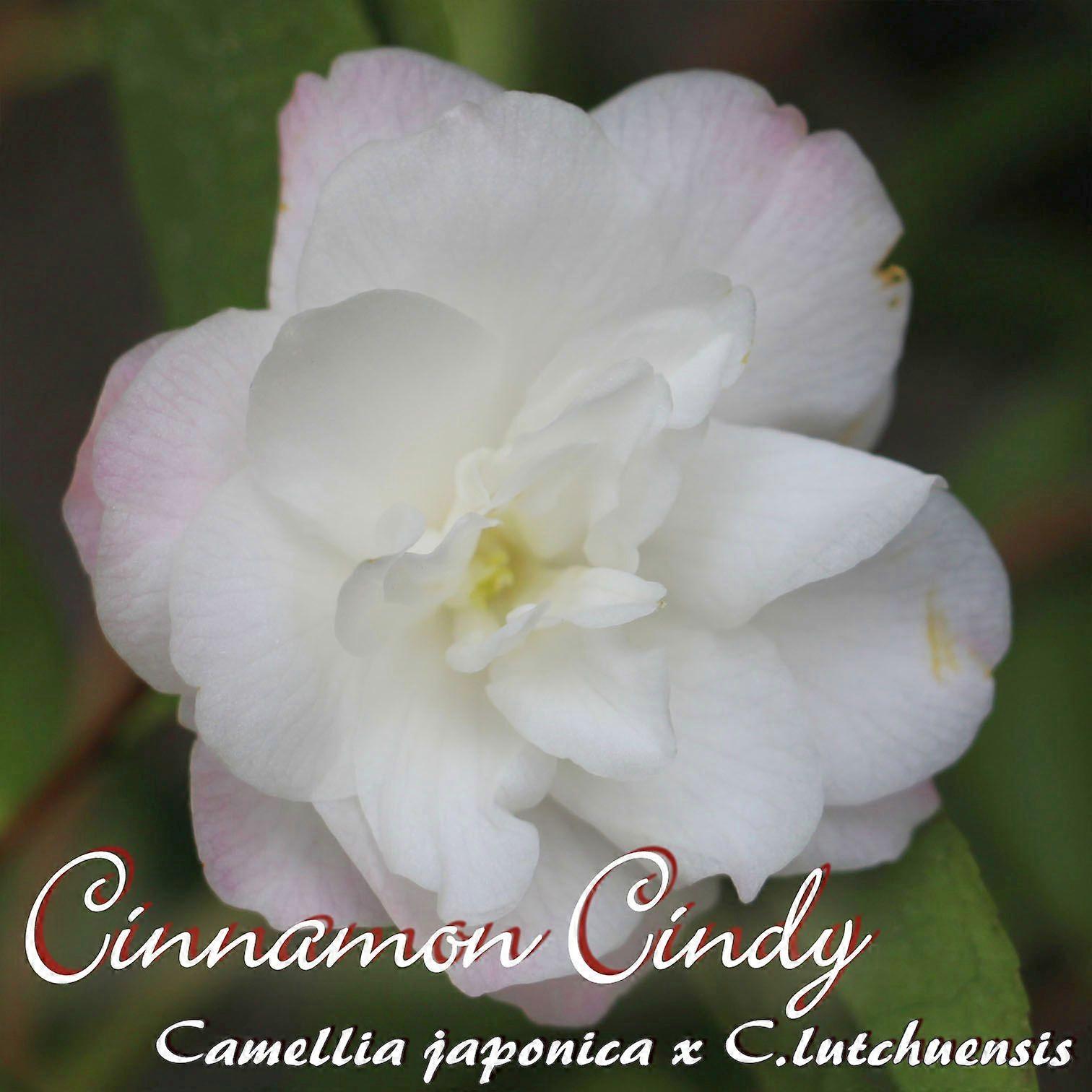 Kamelie "Cinnamon Cindy" - Camellia japonica x C.lutchuensisCamellia japonica x C.lutchuensis "Cinnamon Cindy" - Blüte: weiße, duftende, paeonienförmige, kleine Blüte, bis 6 cm - Blütezeit: November bis April -Laub: länglich, oval, dunkelgrün, glänzend, klein - Wuchsform: schwach wüchsig, leicht hängender Wuchs - Winterhärte: keine Angabe -Bemerkungen: kleines Laub, reichblühend4 bis 5-jährige Pflanze, Höhe ohne Topf gemessen zwischen 30 und 60 cm, Durchmesser zwischen 15 und 30 cm, im 2 l Topf, mit Sortenetikett.Die Abbildung der Pflanze ist als Größenbeispiel zu verstehen, Abweichungen sind möglich Keine Lieferung in Länder, die nicht zur EU gehören