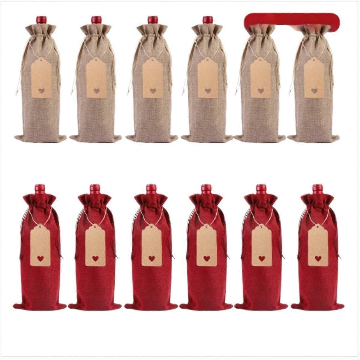INF 12-pack vinpåsar i linne medragsko Blandade färger, 15x35Perfekt för gåvor och förvaring