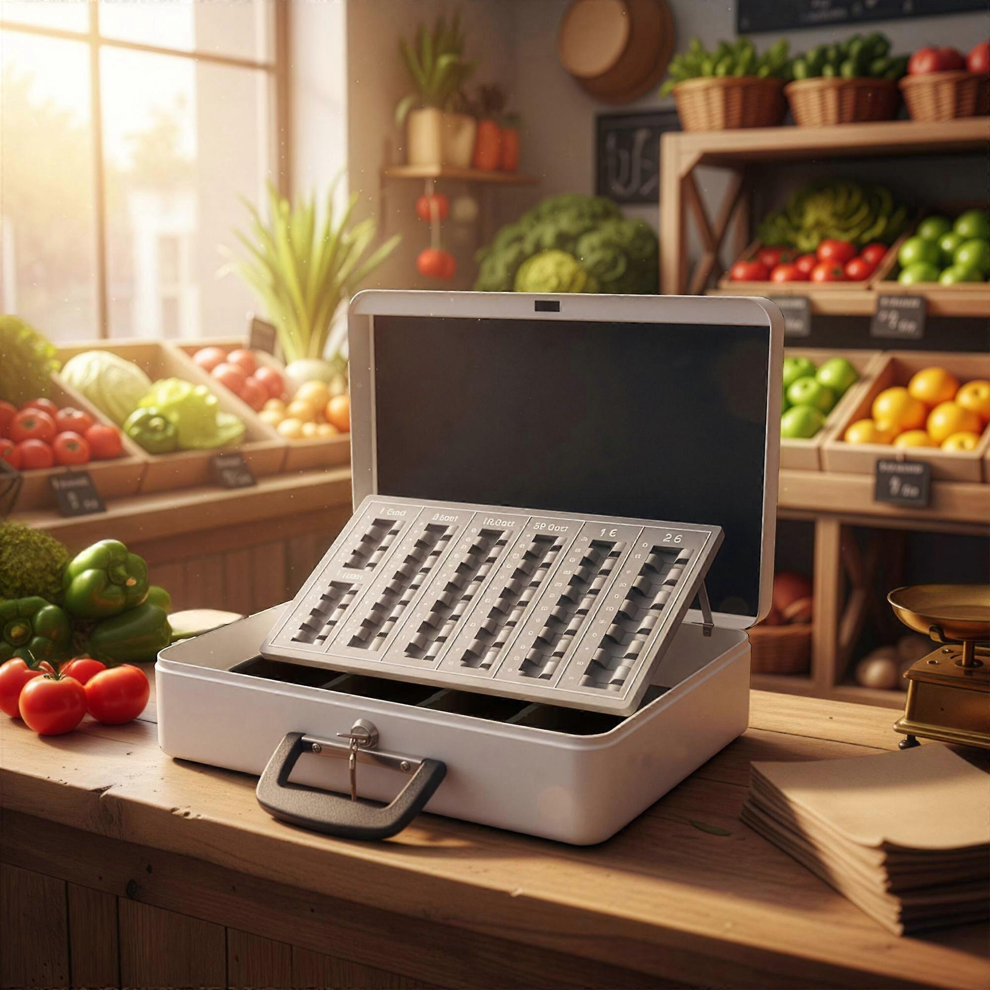 Låsbar kassalåda i järn med avtagbar insats