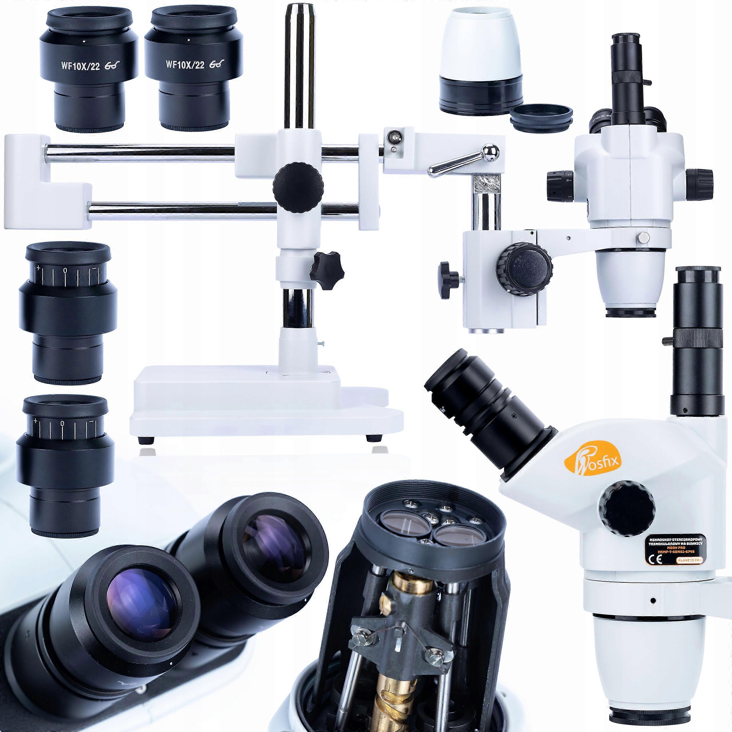 Mikroskop stereoskopowy Rosfix Moon Pro MSMP-T-SDMS1-6745 to zaawansowane narzędzie, które łączy wysoką jakość optyki z funkcjonalnością, idealne dla profesjonalistów w dziedzinach takich jak elektronika, jubilerstwo czy badania naukowe. Wyposażony w trinokularową głowicę, umożliwia jednoczesne obserwacje przez okulary oraz kamerę, co ułatwia dokumentację i analizę. Zakres powiększenia od 6,7x do 45x, z możliwością rozbudowy do 270x, pozwala na precyzyjne badania detali. Mikroskop charakteryzuje się ergonomiczną konstrukcją, dużą odległością roboczą oraz regulacją dioptrii, co zapewnia komfort użytkowania. Dodatkowo, możliwość montażu kamery Mensa Pro KMMP-HDMI-USBI oraz oświetlenia LED sprawia, że jest to wszechstronny sprzęt, który spełnia wymagania nawet najbardziej wymagających użytkowników. Seria Planets PRO, do której należy ten mikroskop, wyróżnia się trwałą konstrukcją i zaawansowanymi funkcjami, co czyni go doskonałym wyborem dla każdego, kto poszukuje niezawodnego sprzętu mikroskopowego.