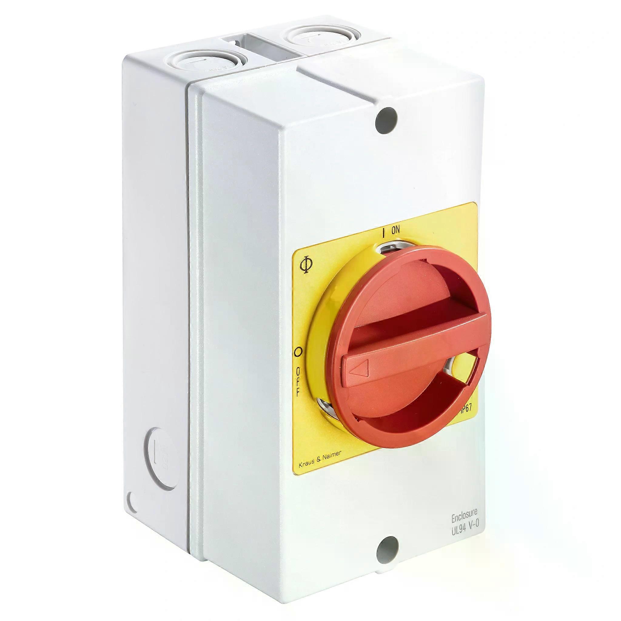 KRAUS&NAIMER Not-Aus-Schalter, 3pol+1NO/1NC, AP-Gehäuse IP66, Ith=25 A, P=7,5 kW (AC23B, 400V AC), 6 mm²