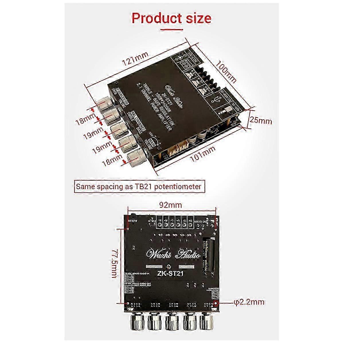 -ST21 Bluetooth Digital Amplifier Board 2.1 Channel 100Wx2+200W Subwoofer Chip TPA3221 HiFi Stereo Amplifier Board(A)