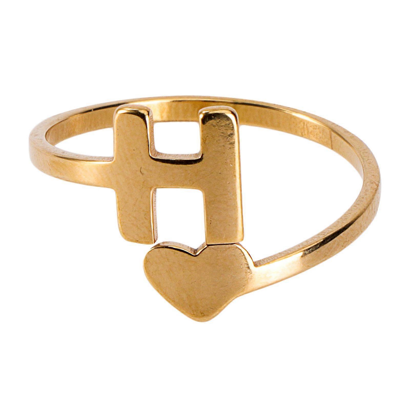 1PC English Initials Ring Simple Stainless Steel Ring Retro Girl Jewelry(Golden)