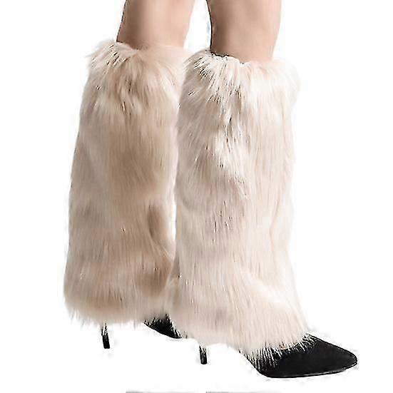 1 Pair Faux Fur Leg Warmers for Women Girls Plush Soft Boot Cuff Sleeves Fluffy Furry Leg Sleeve for Winter Warmth