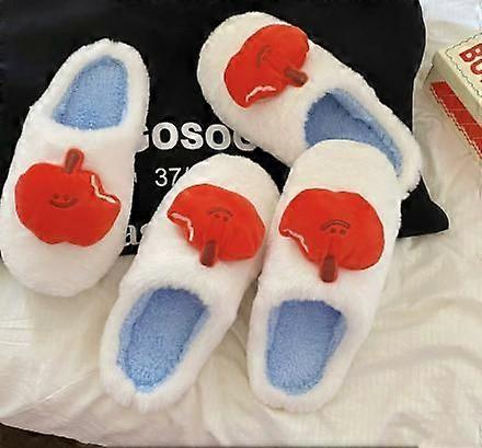 1 Pairs Cute Plush Apple Slippers Christmas Cozy Fluffy Warm Fuzzy Floor House Slippers Cartoon Fruit Winter Plush Warm Apple Shaped Shoes for Couples