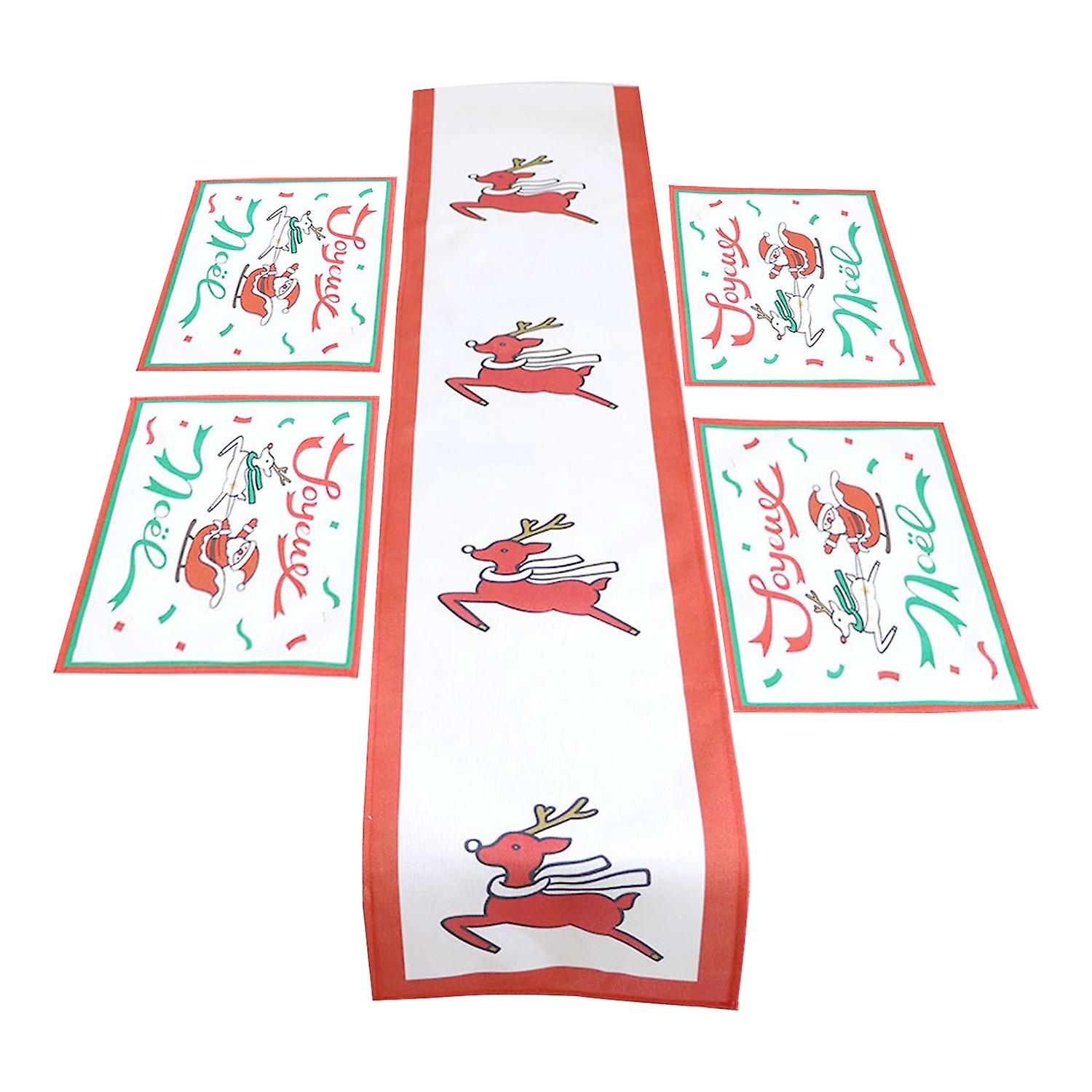 1 Set Table Mat Reusable Nice-looking Christmas-themed Table Runner Tablecloth Set Home Hotel Decor