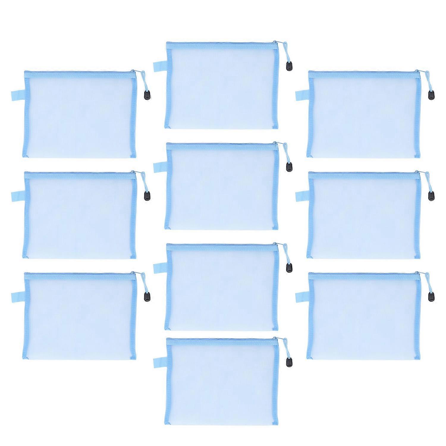 10PCS Zipper Documents Pouch Waterproof Tear Resistant A5 Paper Size Document Organizer Bag Blue