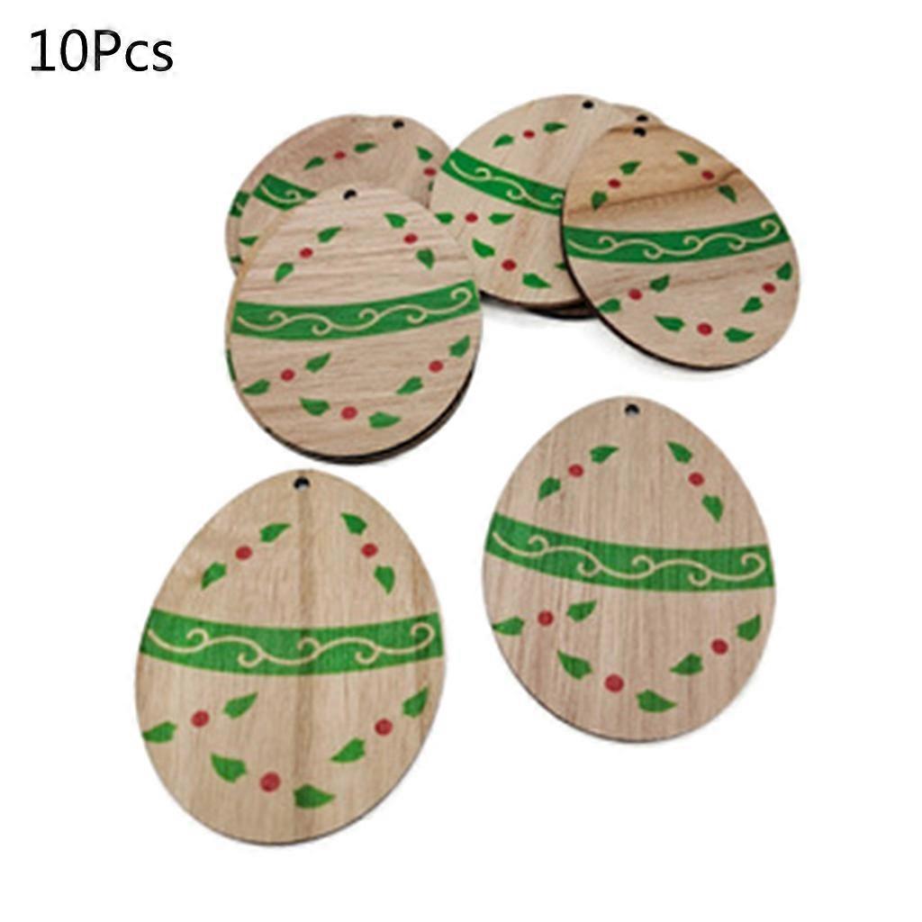 10 Pcs Easter Eggs Wood Slices Pendant Hanging Ornaments Craft Party Decoration