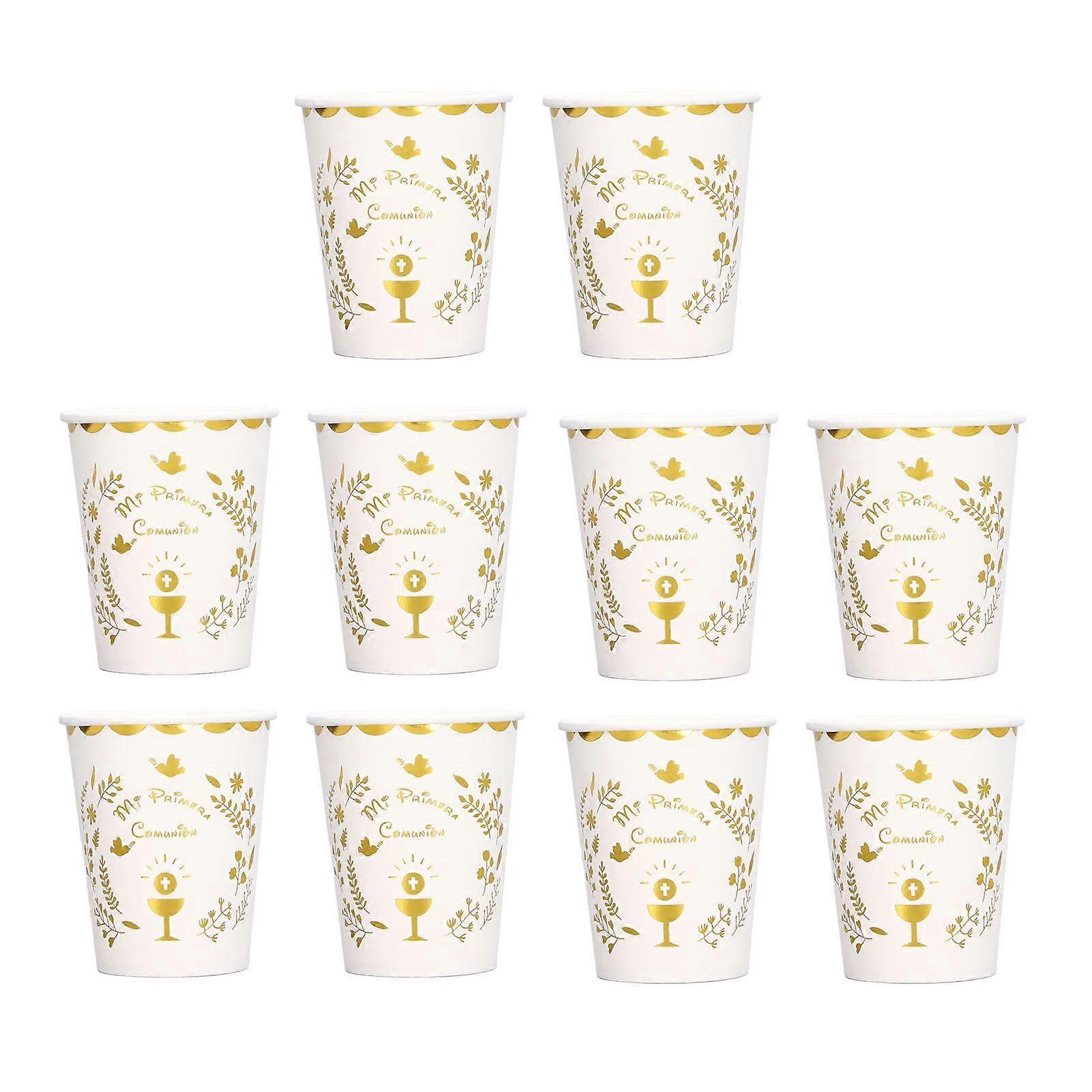 10Pcs Paper Cups 250ml Spanish Holy Communion Pattern Thick Wall Attractive Appearance Design