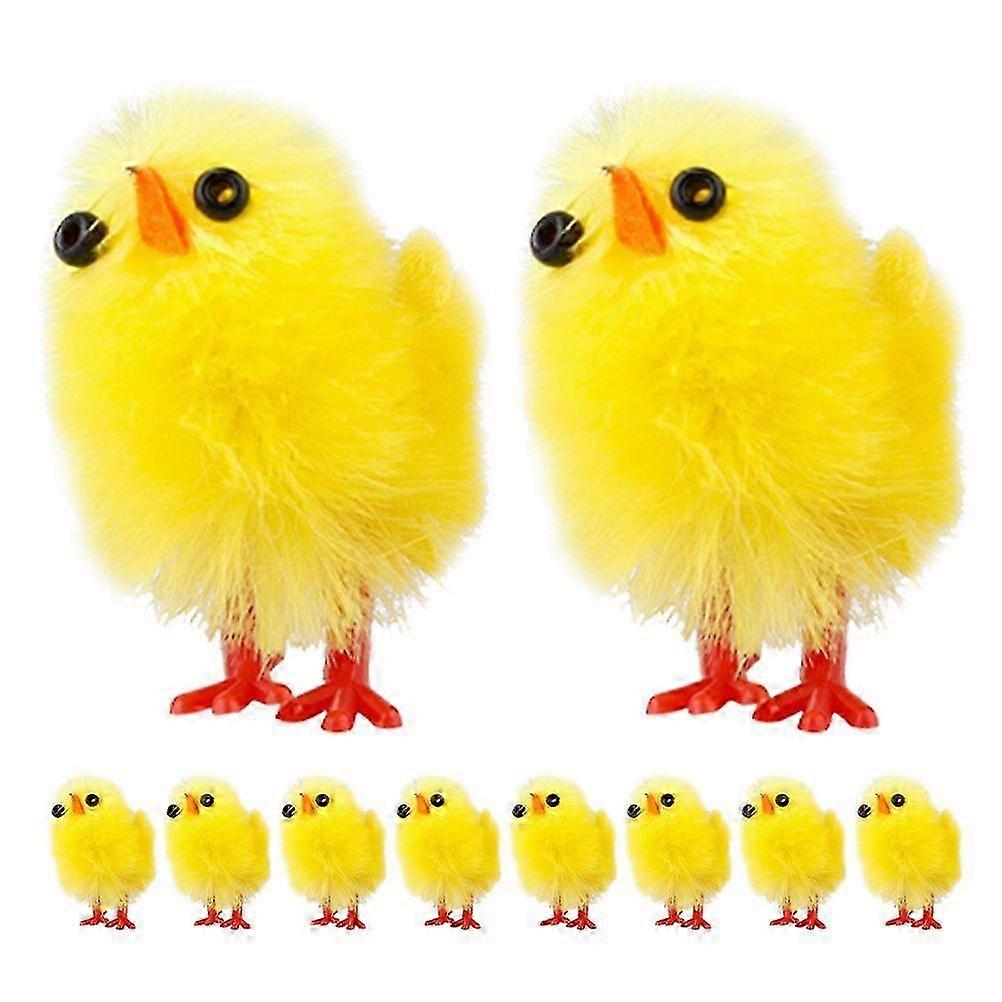10PCS Delightful Tiny Flocking Chicken Molds Easter Ornaments Decors