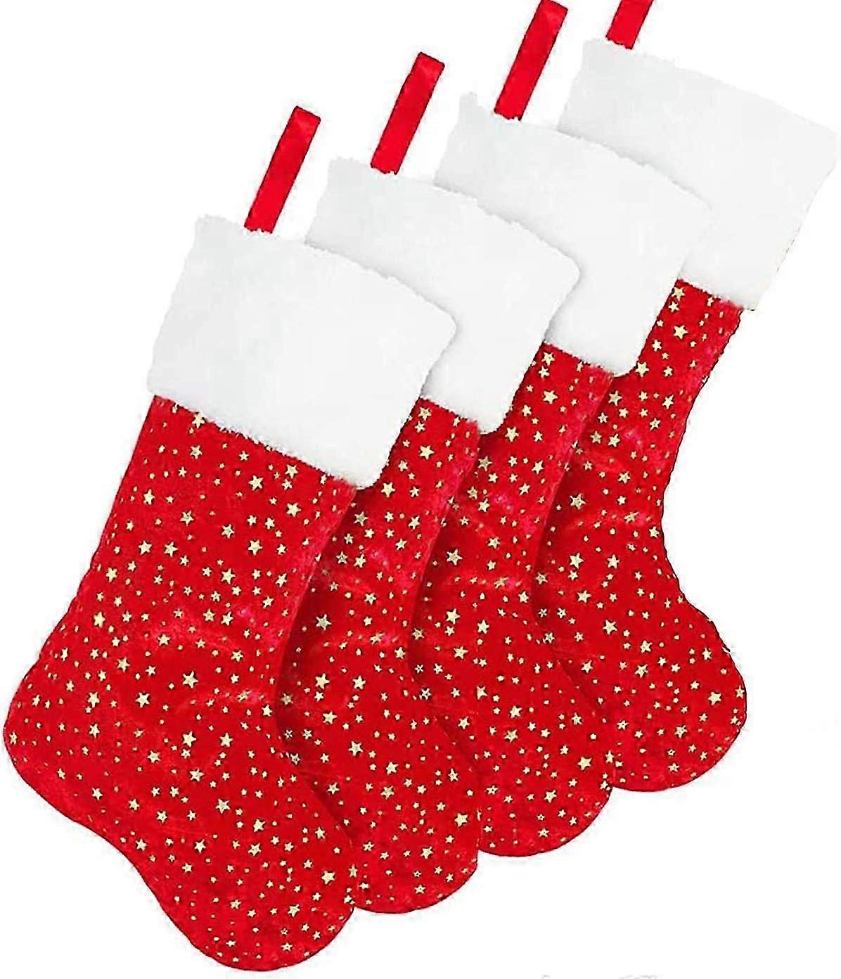 18 Inches Red Christmas Stockings Set Of 4 Golden Stars Christmas Fireplace Hanging Stockings With White Plush