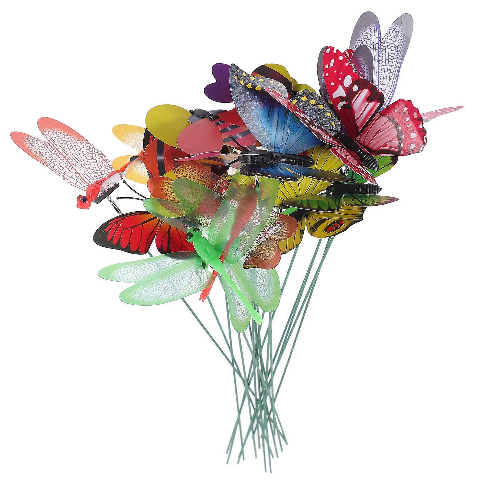 18pcs Garden Insect Stakes Garden Simulation Dragonfly Bee Butterflies Stakes