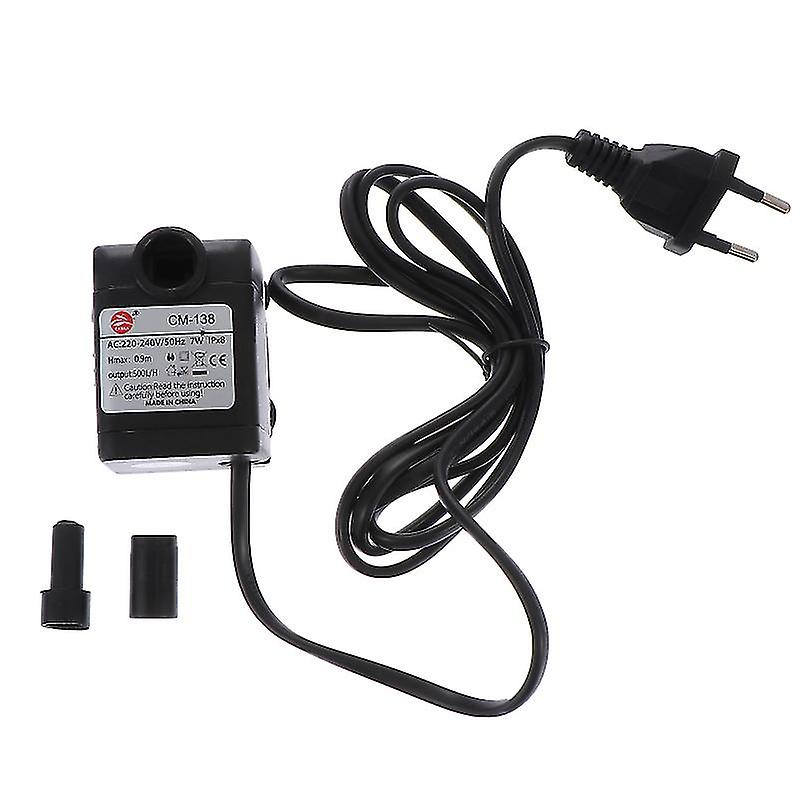 This product is a Features -Color: Black - Material: ABS - Size: About 4.50X5.00X5.50cm/ 1.77X1.97X2.16in -Power: 7W -Head: 0.9M -Flow rate: 500L/ H -Voltage: 220V - Suitable for fish tanks, aquariums, ponds, terraces, gardens, fountains, etc. - This submersible pump can pump a lot of water, making the fountain landscape more attractive. - Sturdy suction cups are suitable for vertical or horizontal fixation on the aquarium. - Using a brushless motor, the noise generated is small, which gives you a quiet environment. - Compact and small, will not affect the life of the fish in the aquarium.