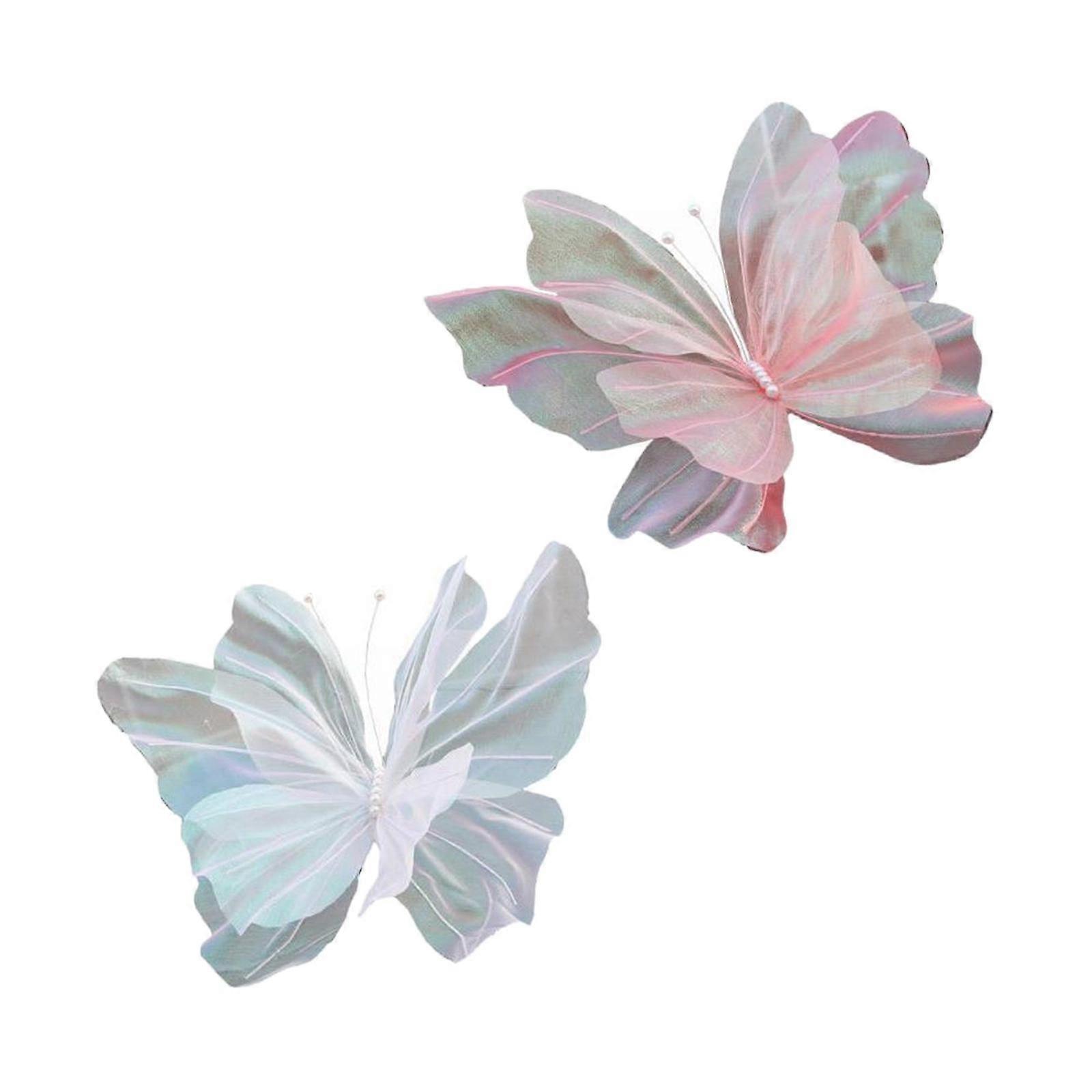 2Pcs Silk Yarn Artificial Butterfly Giant Gauze Fake Butterfly for Wedding