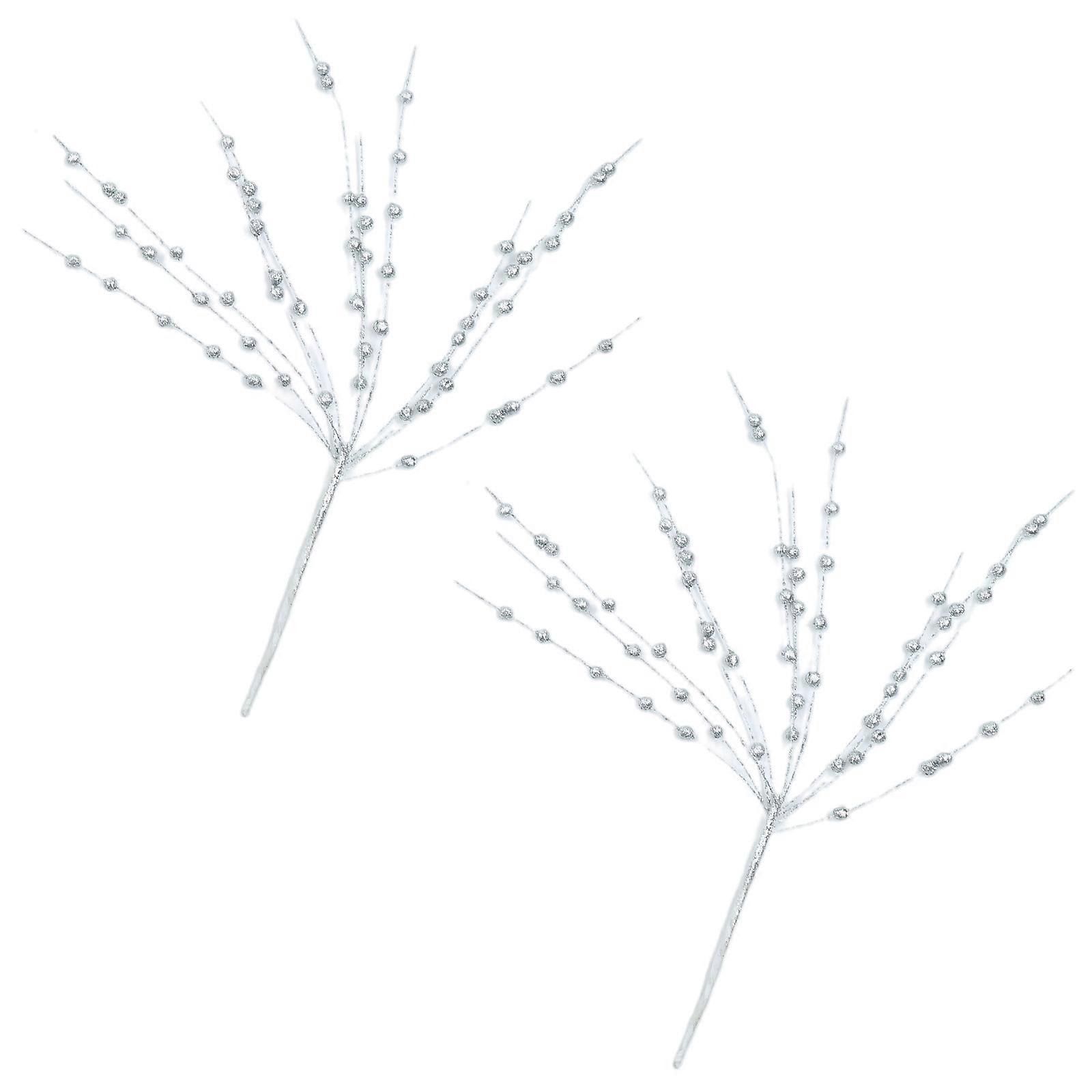 2Pcs Artificial Holly Berries Artificial Flower Branch Artificial Plant Decoration for Christmas Thanksgiving Decoration Silver
