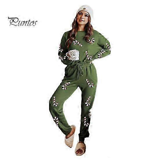 2 Pcs/Set Women Fall Winter Set Christmas Tree Snowman Santa Print Sequin O Neck Long Sleeve Top Elastic Waist Pants Set New Year Holiday Party