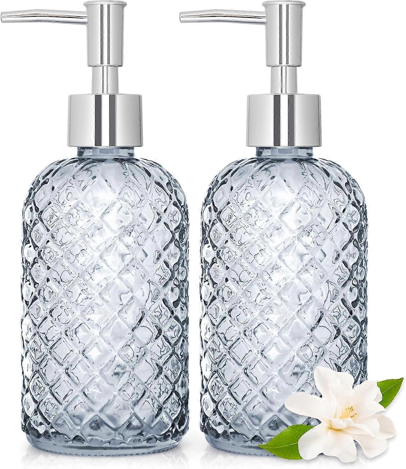2 Pack Glass Soap Dispenser ,Diamond Cut Design Refillable Liquid Hand Soap Bottle Dispenser for Bathroom, Countertop