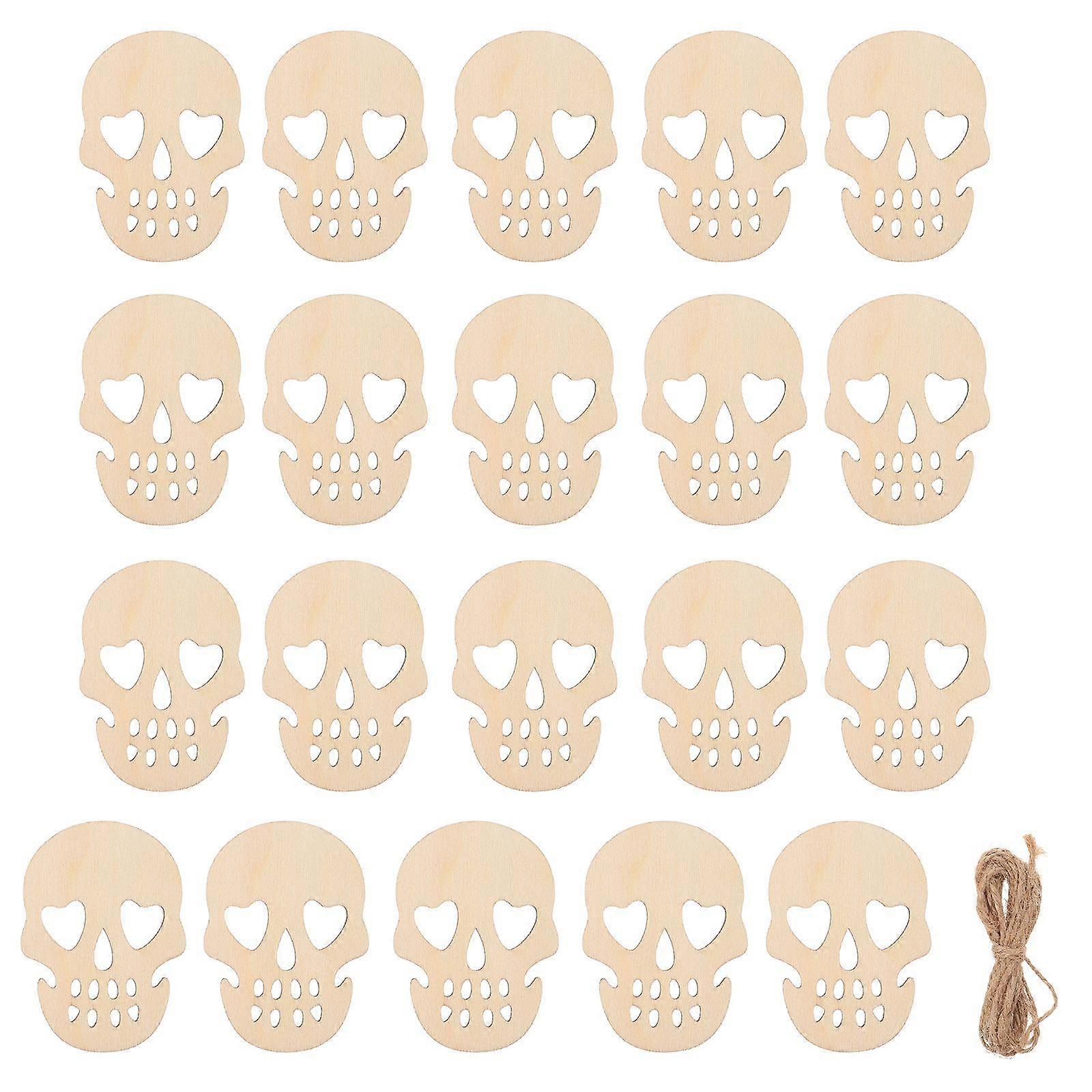 20 Pcs Halloween Skull Hanging Decors Wood Skull Ornaments Party Pendants