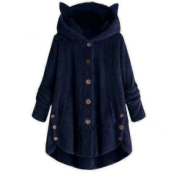 2022 Autumn And Winter New Design Women's Clothing Women's Hooded Cat Ears Plush Top, Outdoor Mid-length Solid Color Button Coat For Women, Leopard Co