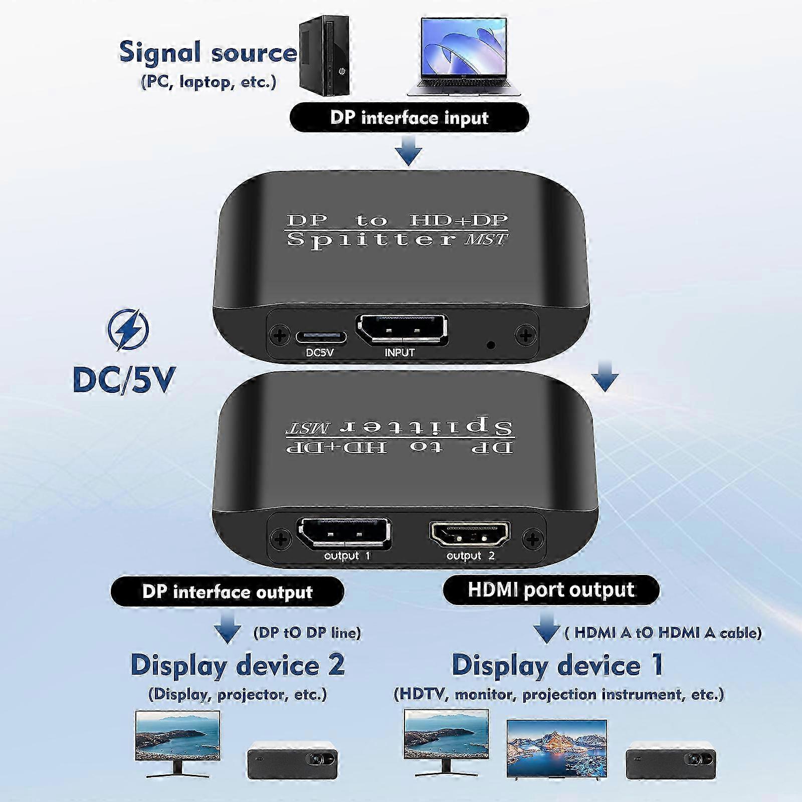 2025 DP TO HDMI+DP Splitter MST/SST 4K@60HZ 2-in-1 Adapter Extended Display