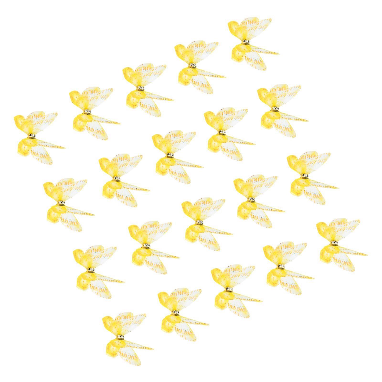 20Pcs Rhinestones Butterfly Appliques Sew on Organza Patches Butterfly Embroidered Appliques for Clothing Sewing Craft Yellow