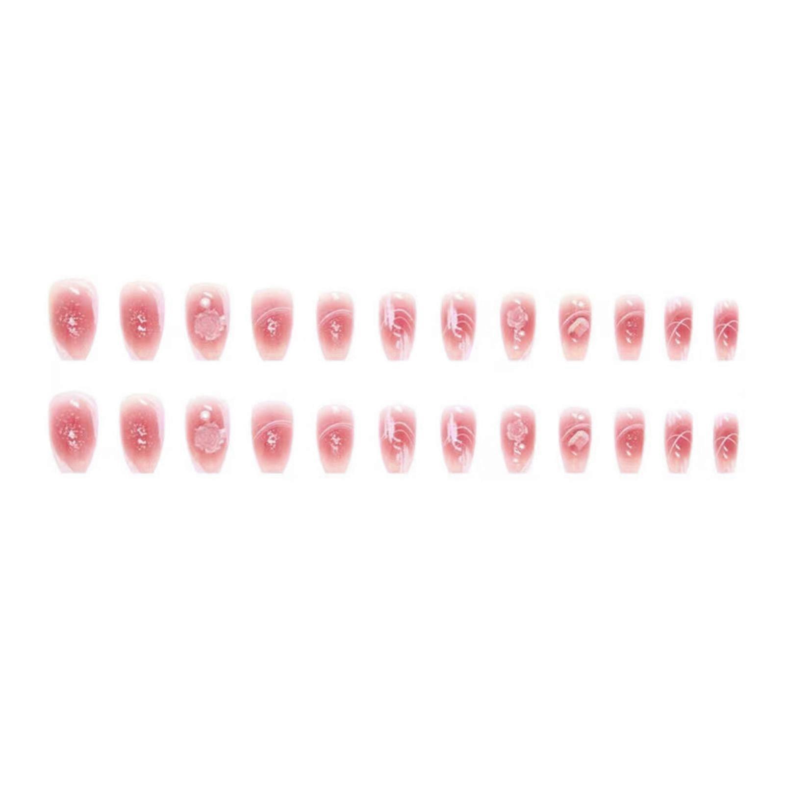24pcs Camellia Artificial Nails Fantasy Gloss Pink Press-on Nails for Beginners