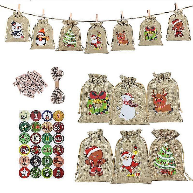 24days Christmas Advent Calendar Xmas Gift Bags Diy Set Paper Stickers Christams Tree Hanging Pendants Decorations For Home