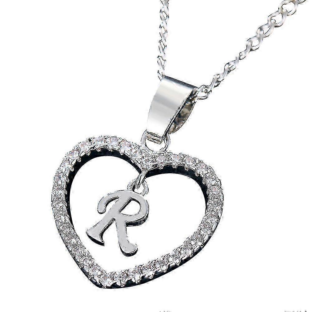 26 Letters Alphabet A To Z Initial Cubic Zirconia Heart Pendant Women Necklace