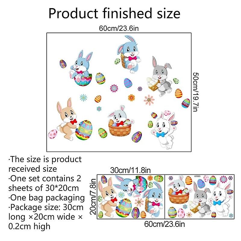 2Sheets Easter Bunny Egg Window Sticker Cartoon Rabbit Wall Sticker DIY Decals 2024 Happy Easter Party Home Decoration Kids Gift