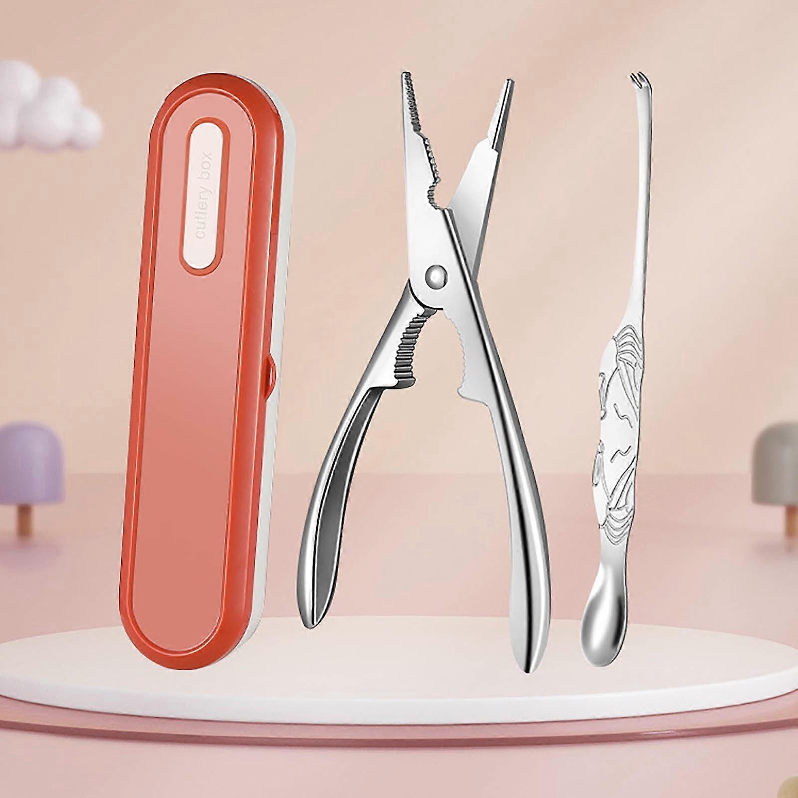 3 Pcs 2*8.1" Seafood Cracker Tool Set with Lobster Sheller, Stainless Steel Crab Crackers, Crab Leg Fork, Scissors, Pick & Storage Bag