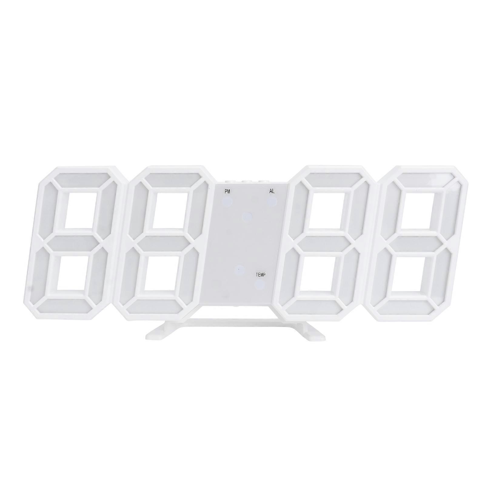 3D LED Digital Clock Creative Wall Desk Alarm Clock USB Charging Clock for Home Office (White, White Numbers)