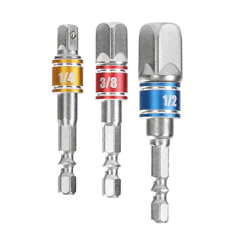 3Pcs Plug Adapter Hexagonal Shank to 1/4 3/8 1/2inch Drill Bit Electric Driver