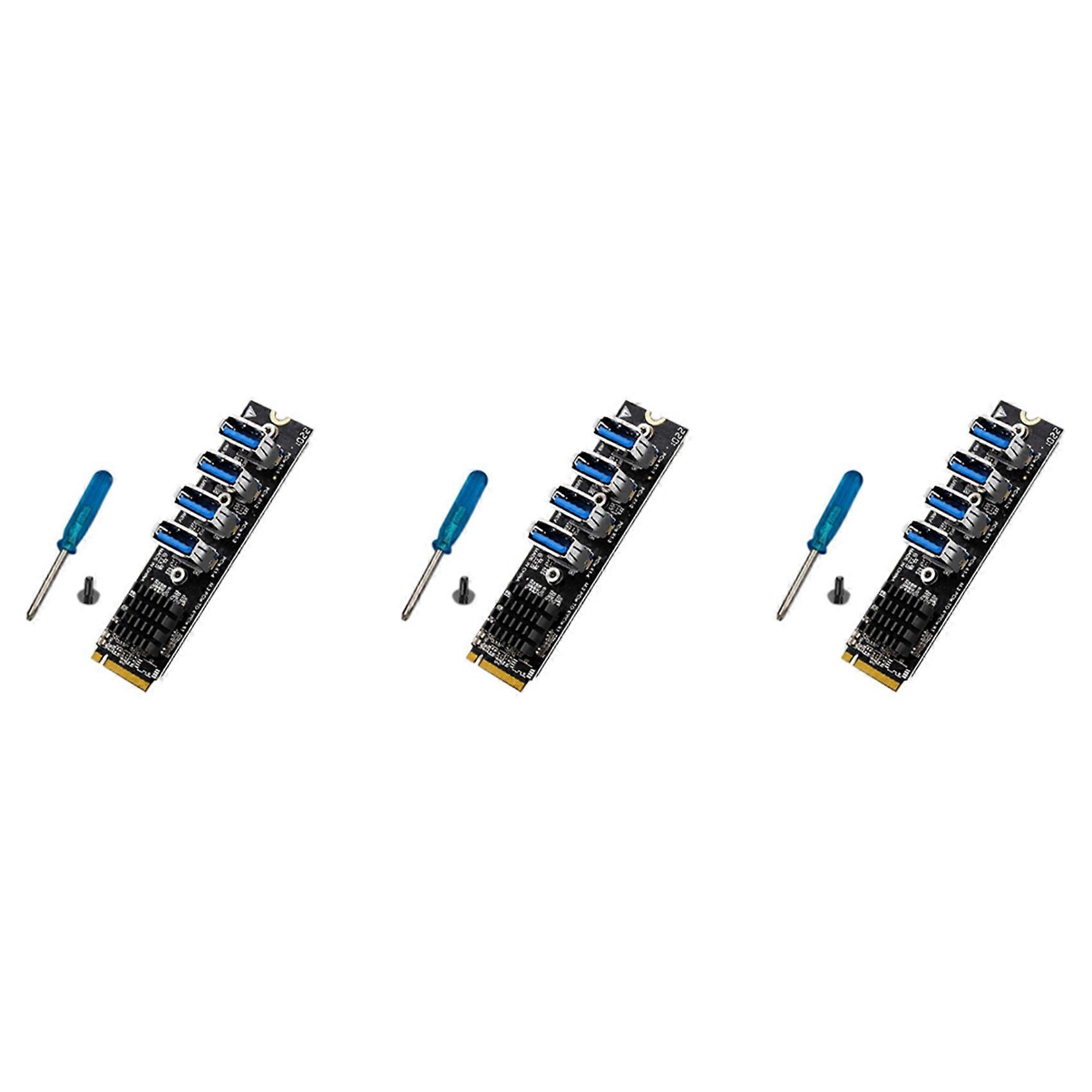 3X M.2 M-Key Pcie Expansion Cards M.2 to Pci-E X1 4 Port USB3.0 Graphics Card Expansion Adapter ASM1184E M.2 Adapter
