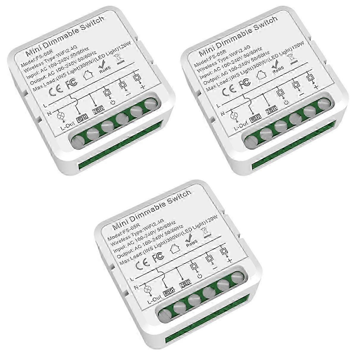 3X Tuya WiFi Smart Dimmers Switch Module Supports 2 Way Control LED Lights Dimmable Switch Work for