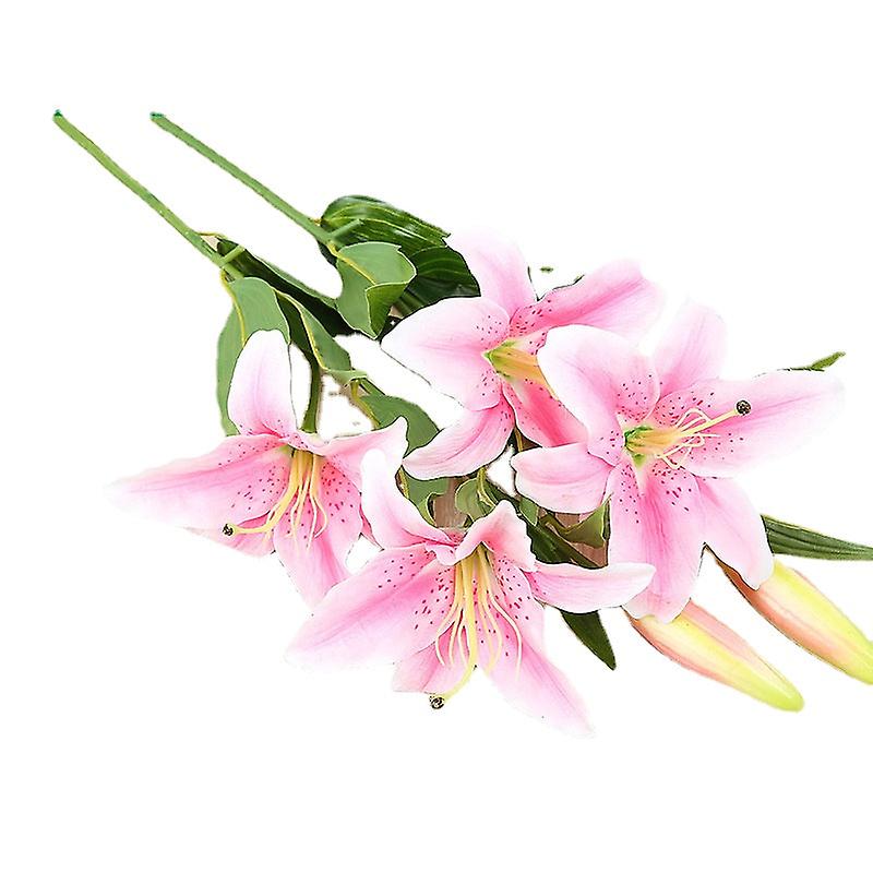 4Pcs Artificial Flowers Flora Bouquet Realistic Faux Fake Blossom Decoration Lily Raw Silk Flower