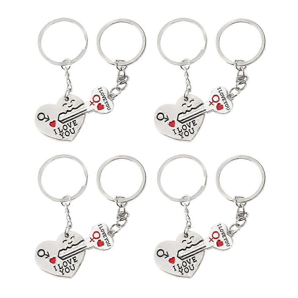4 Pairs Valentine's Day Couple Key Chains Chic Couple Presents Lover's Day Gift Key Rings