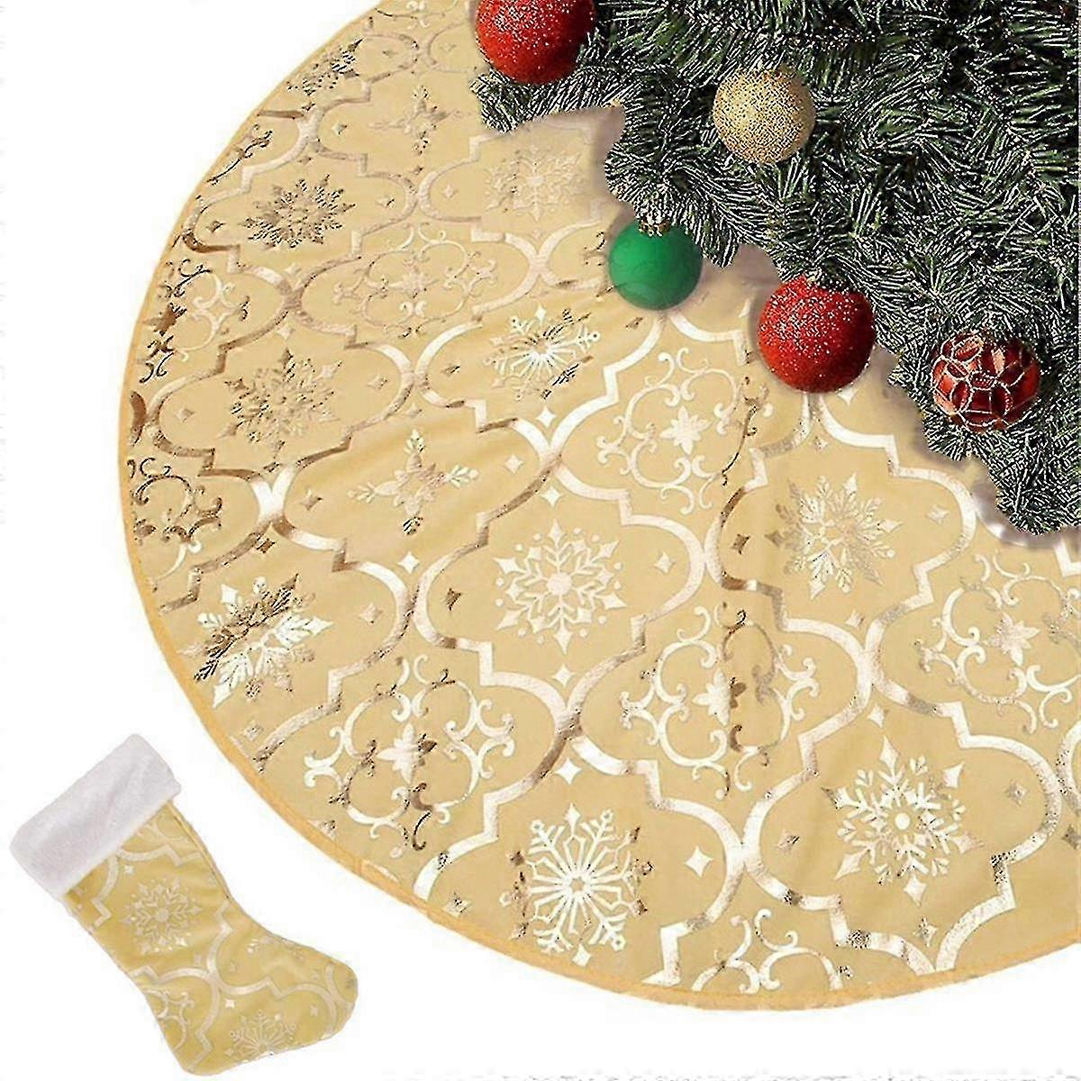 48 Inch Christmas Tree Skirt Xmas Soft Cover Mat Decor Snowflake Collar Farmhouse Tree Skirt,gold