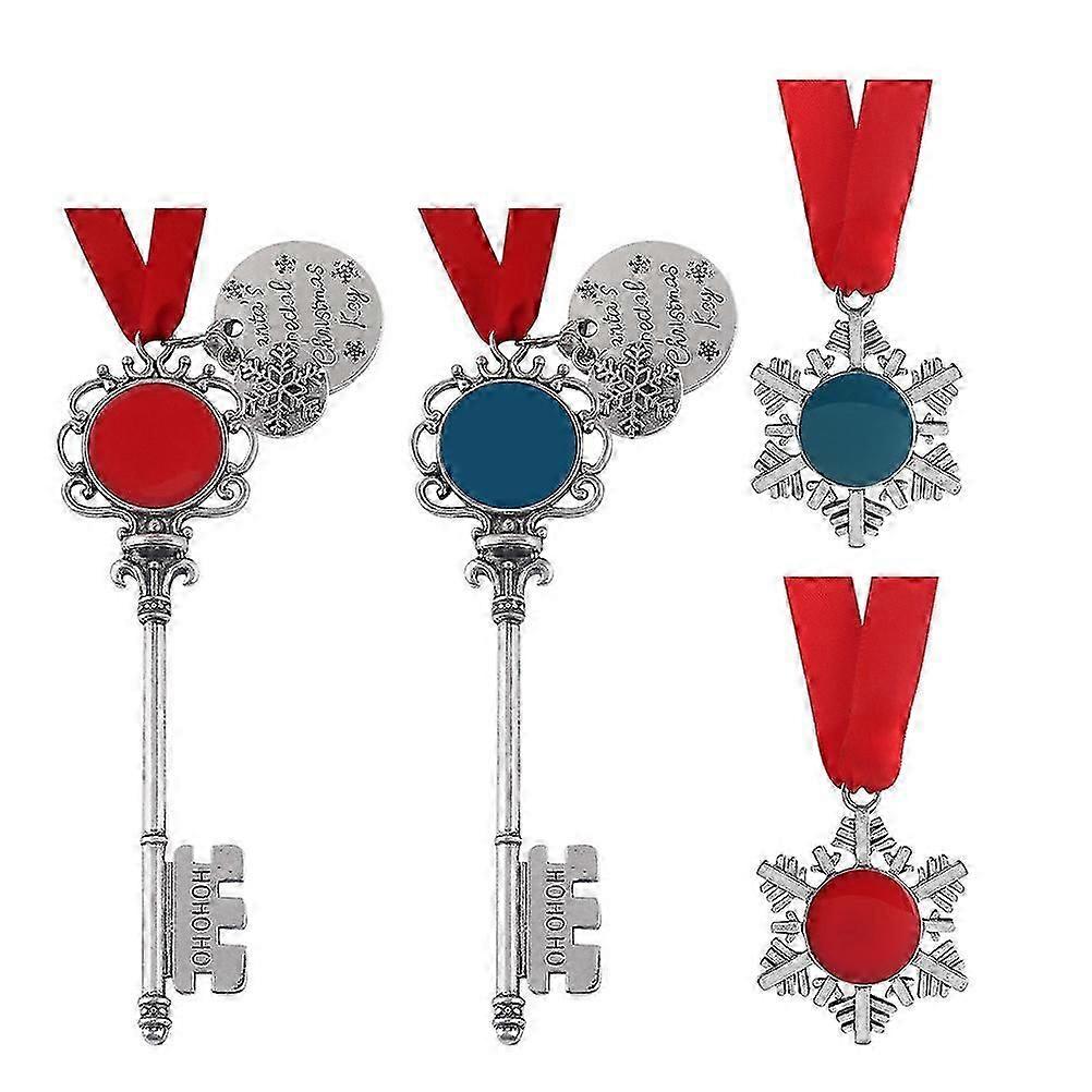 4pcs Christmas Key Chains Ribbon Hanging Pendants Christmas Gifts (Blue, Red)