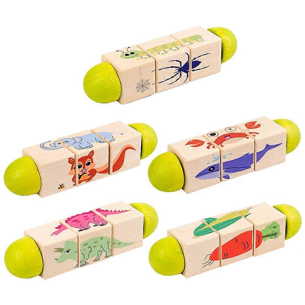 5pcs Wood Rotating Animal Puzzles Building Block Puzzles Educational Toys