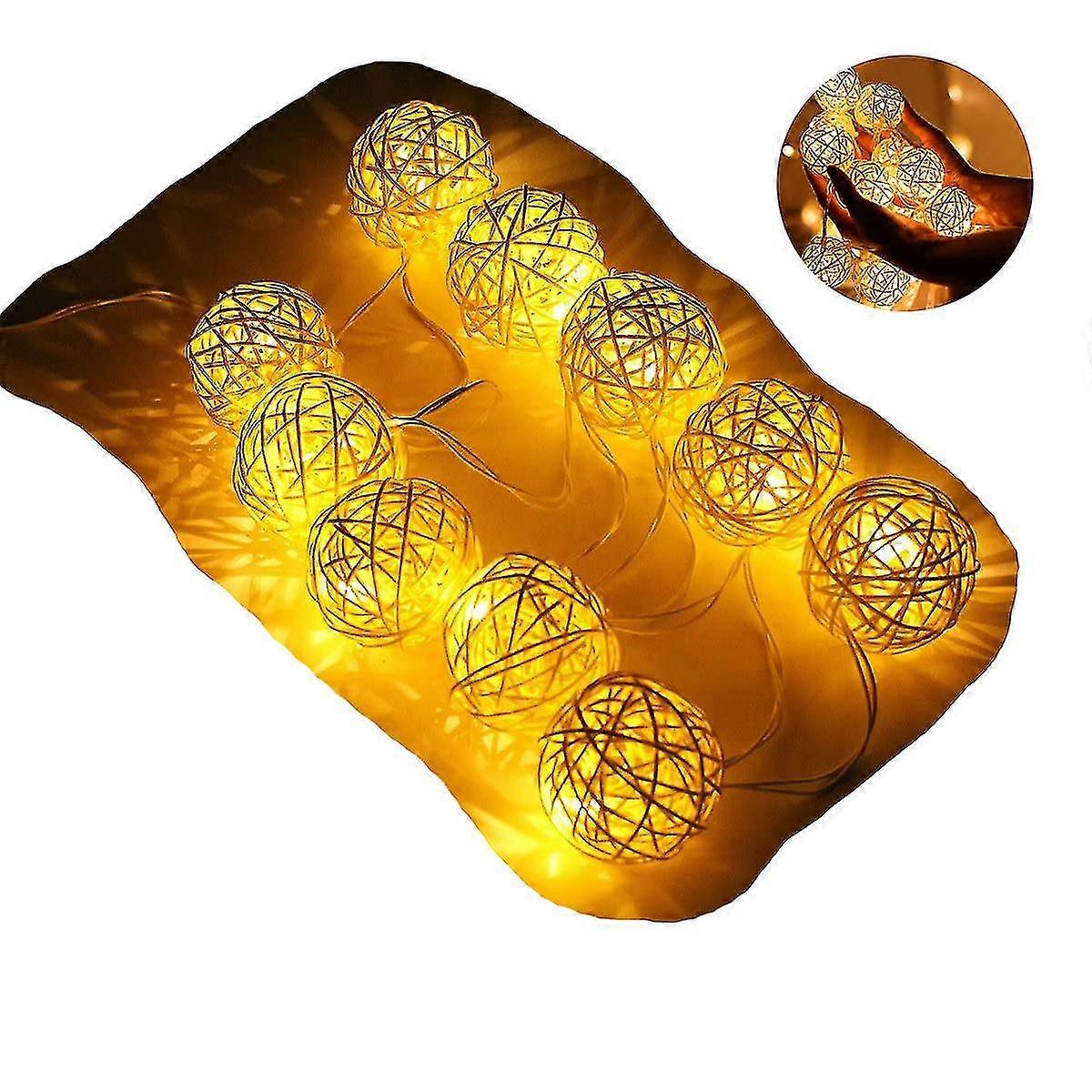 5m Battery Operated Led String Lights 40 Globe Rattan Balls Decorative Christmas Decoration Lights For Bedroom Patio Party Decor