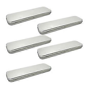 5pcs Pencil Case Iron Tinplate Frosted Single-layer Pencil Case Rectangular Metal Pen Box for Students (Silver