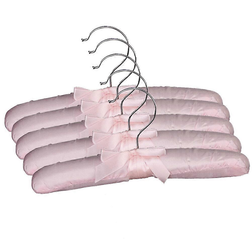 5pcs Practical Sponge Padded Satin Hangers Clothes Racks Clothes Hangers (Pink)