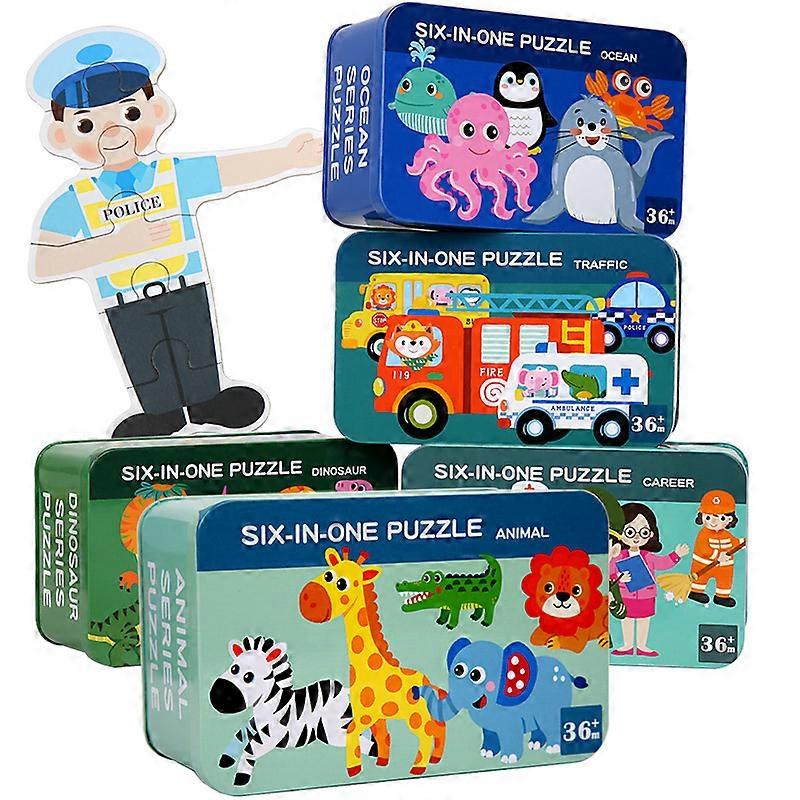 6 In 1 Jigsaw Puzzles for Kids Toddlers Animal Jigsaw Puzzles Learning Educational Toys with Storage Box