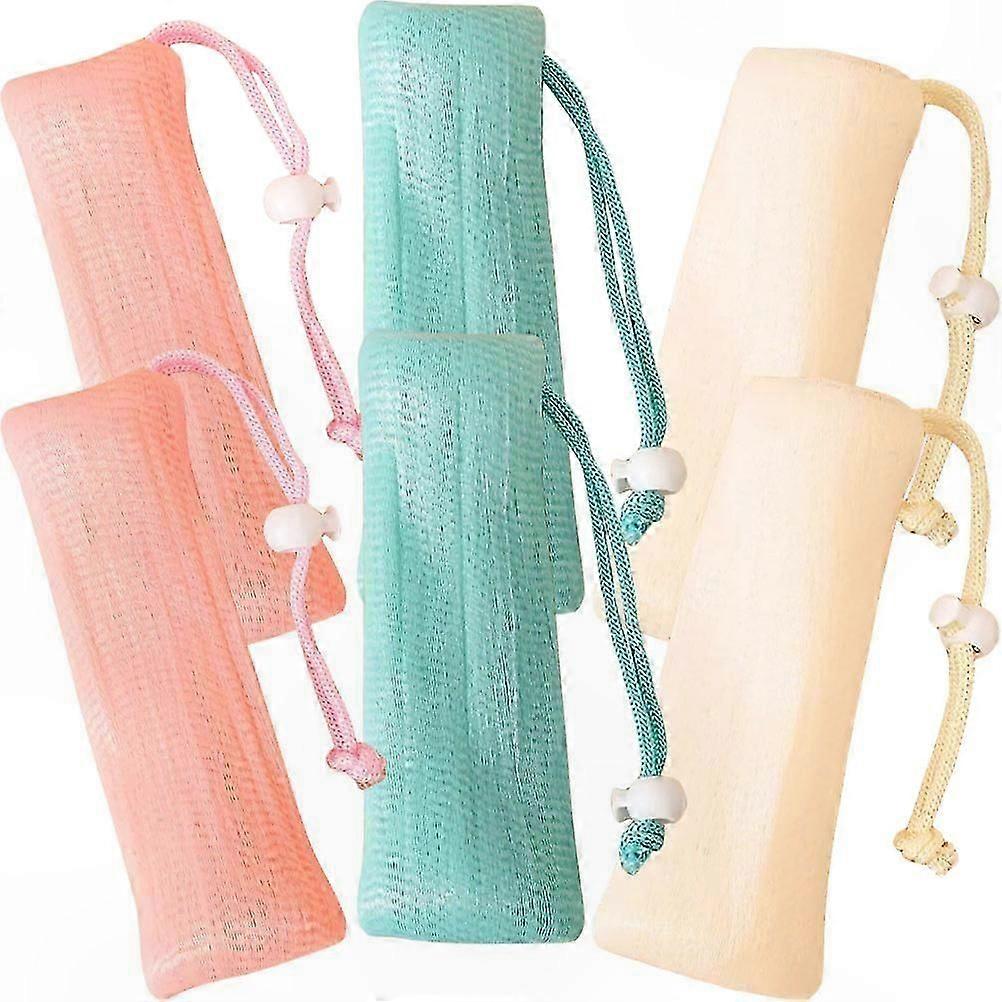 6-Pack Drawstring Soap Pouches for Showering, Assorted Colors, PE Material with Exfoliating Texture for Hanging Storage