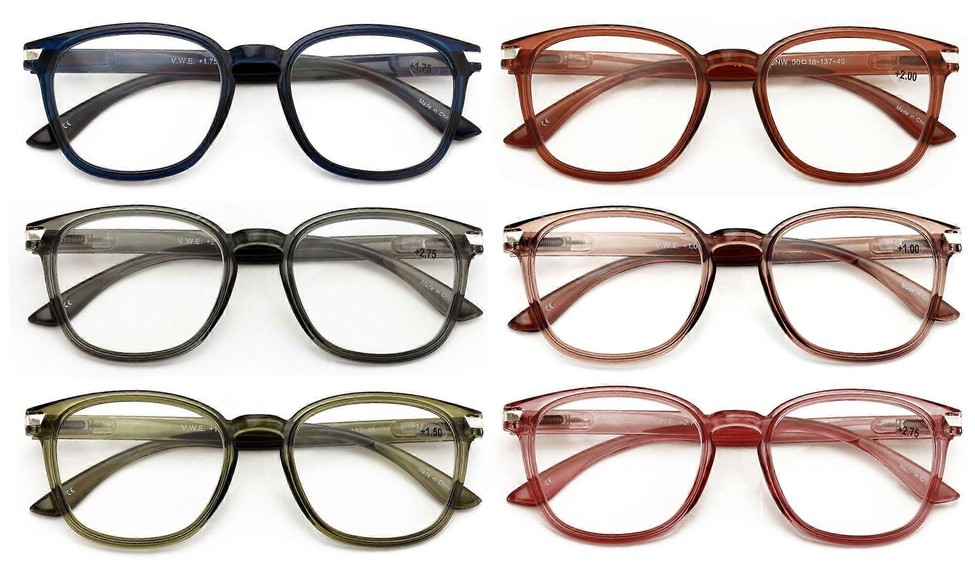 6 Pairs Round Lightweight Reading Glasses - Translucent Clear Spring Hing Reades Men Women 7019 +2.50
