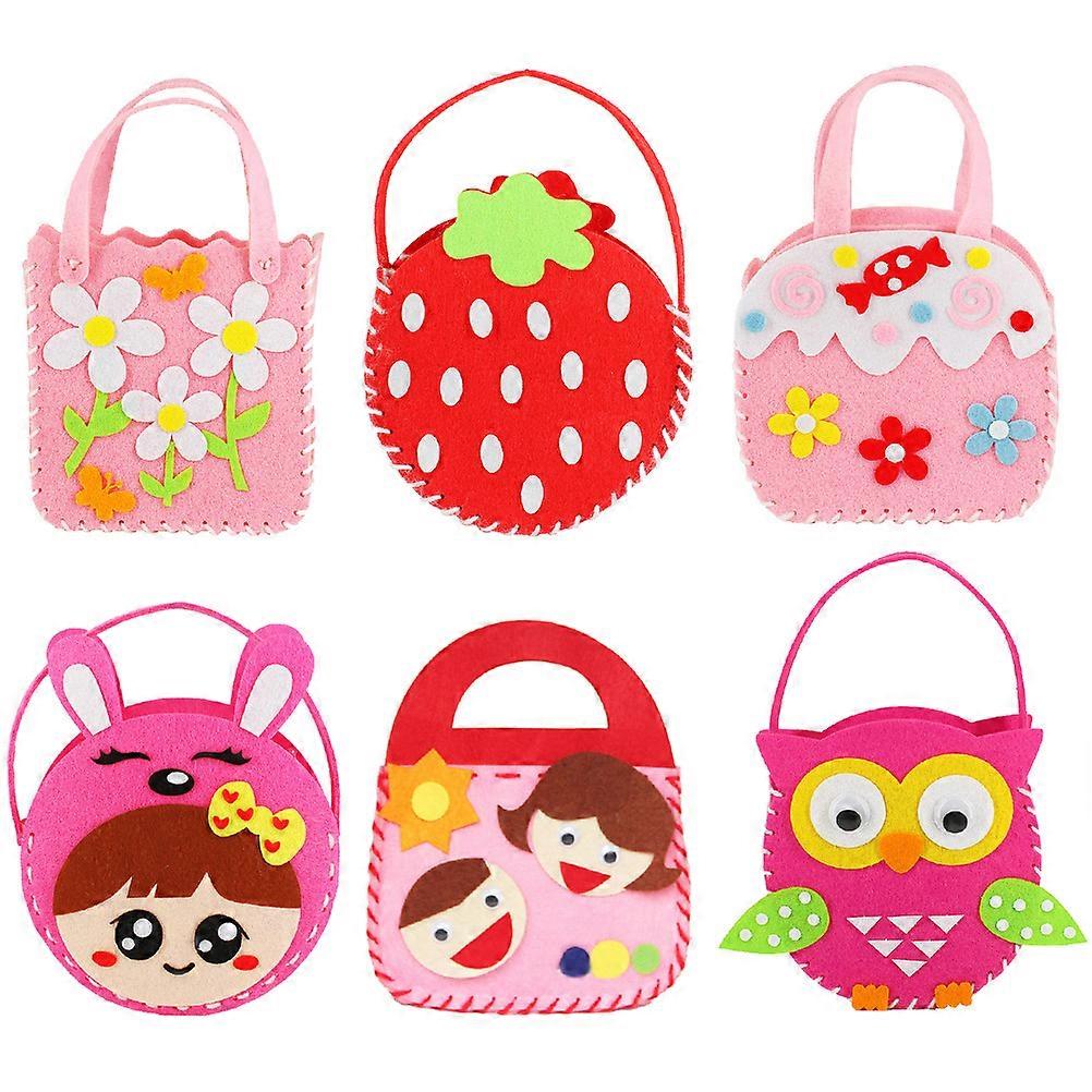 6 Sets Handbag Making Kits Kids Handmade Non-woven Bag Kits DIY Craft Supplies