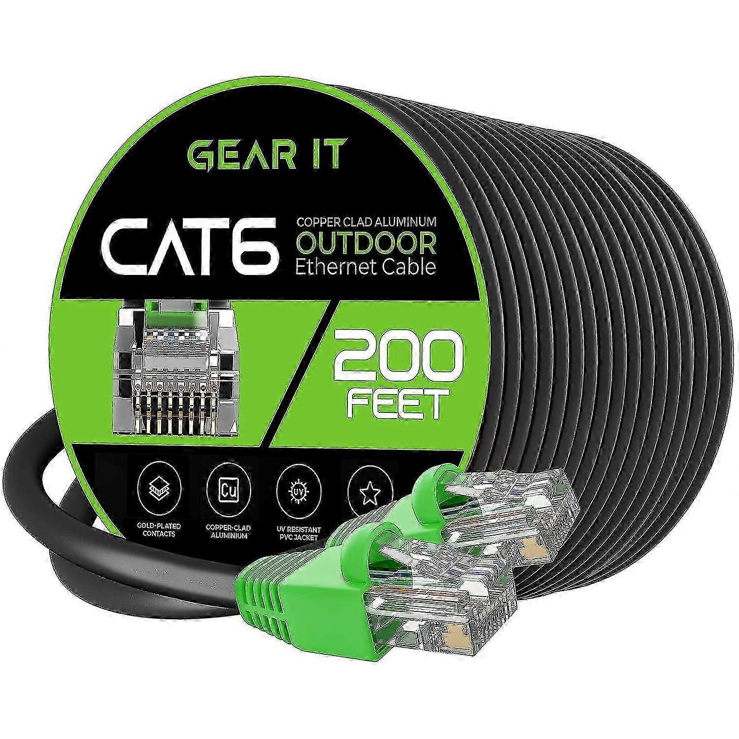 69.6m Cat6 Direct Burial Ethernet Cable - Cat 6 Outdoor Waterproof, In-ground, Uv Jacket - Utp 550 Mhz High Speed Internet Broadband Network - Cca (69