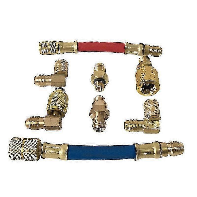 8pcs Car Air Conditioner Refrigeration R134a R12 Converting Adapter Hose Set Kits Joint Quick Remover Installer Quick Coupler Connector