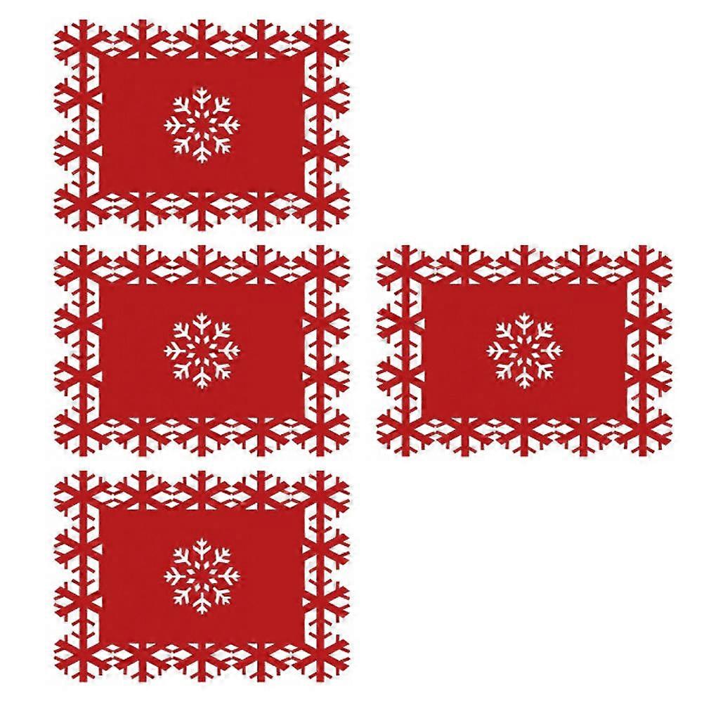 8Pcs Christmas Placemats for Home Red Felt Snowflake Table Mats